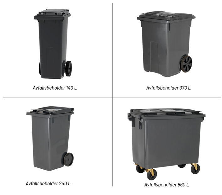 Vi kan tilby tømming av nedgravde og bunntømte containere, kombicontainere, samt frittstående beholdere. Beholdere er inkludert i abonnementet, mens kunden er selv ansvarlig for anskaffelse av containere.